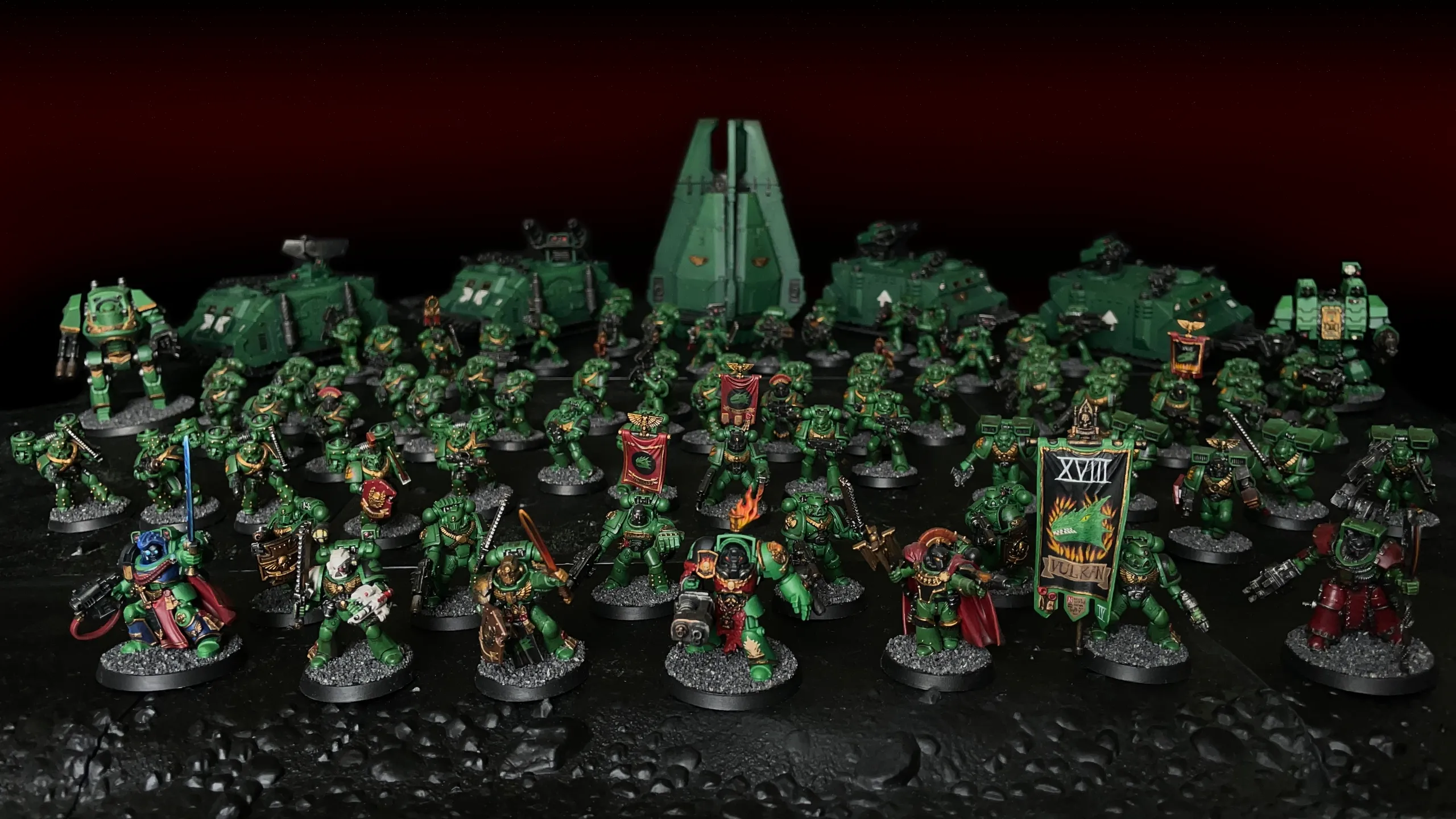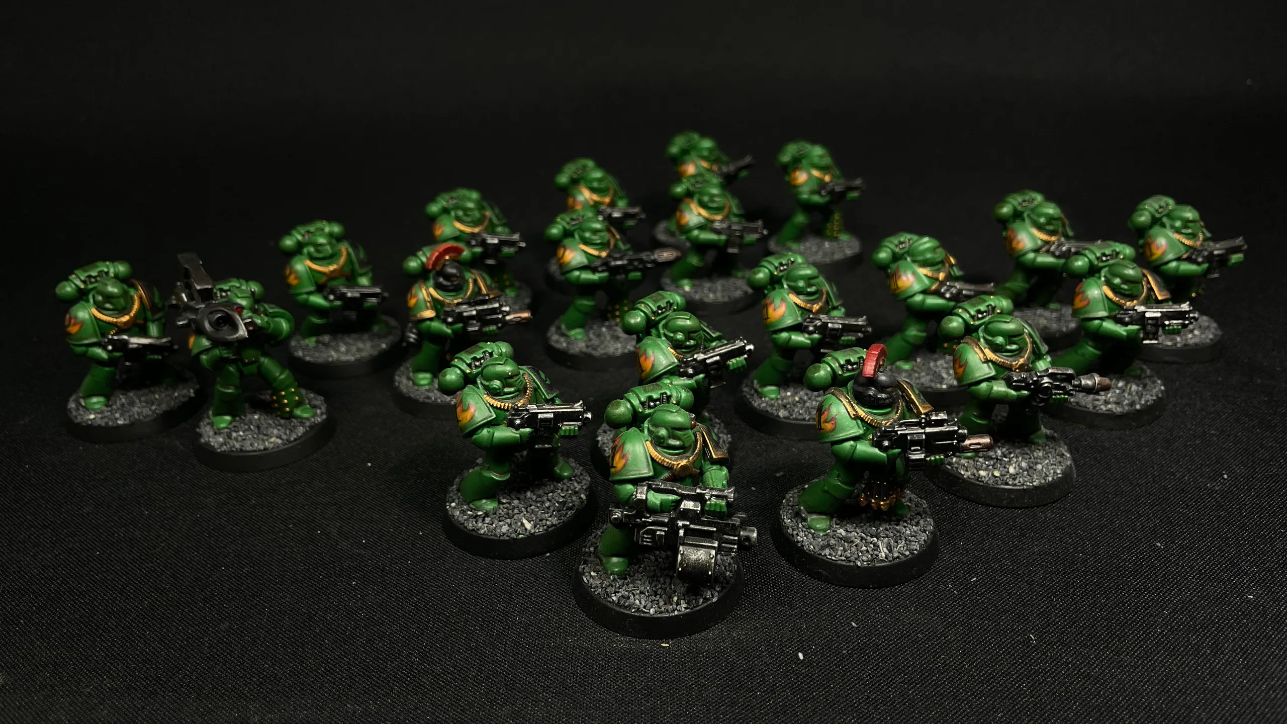 Half a battle company of Warhammer 40,000 firstborn Salamanders