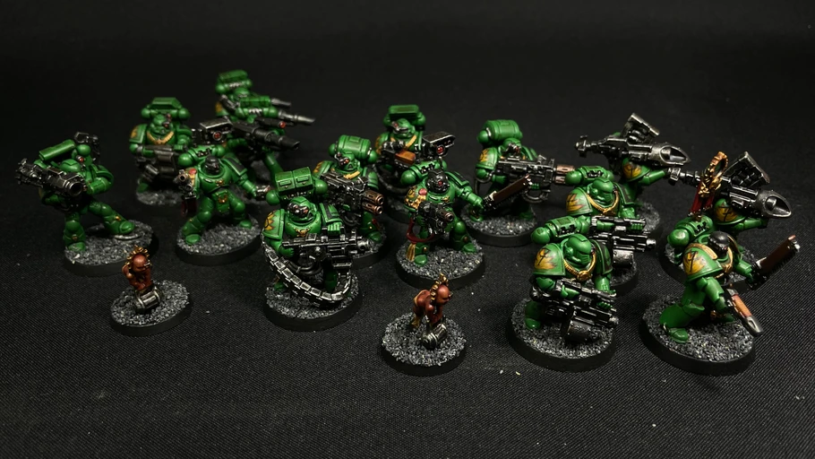 Half a battle company of Warhammer 40,000 firstborn Salamanders